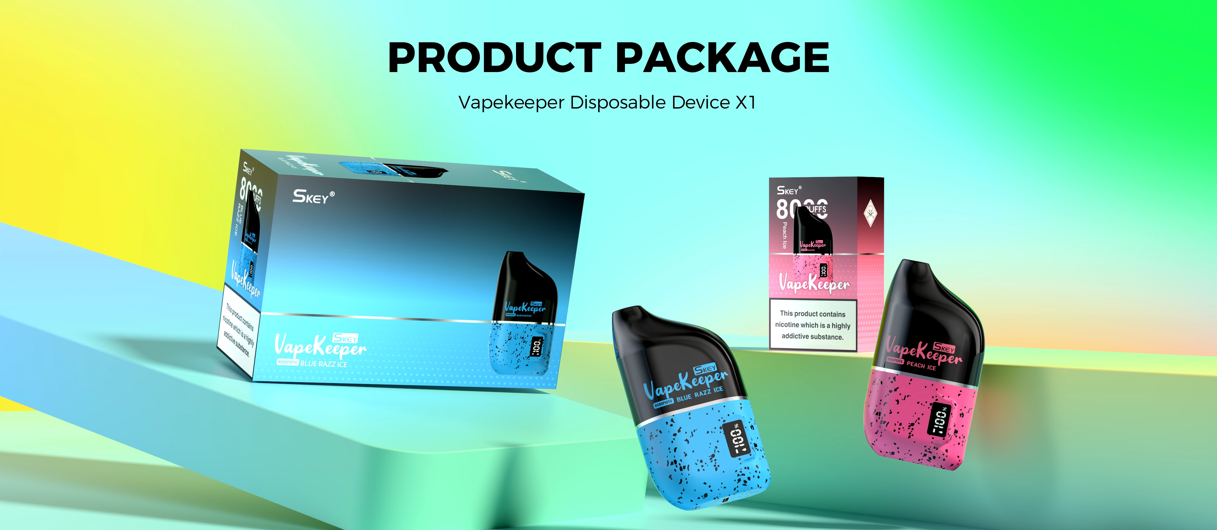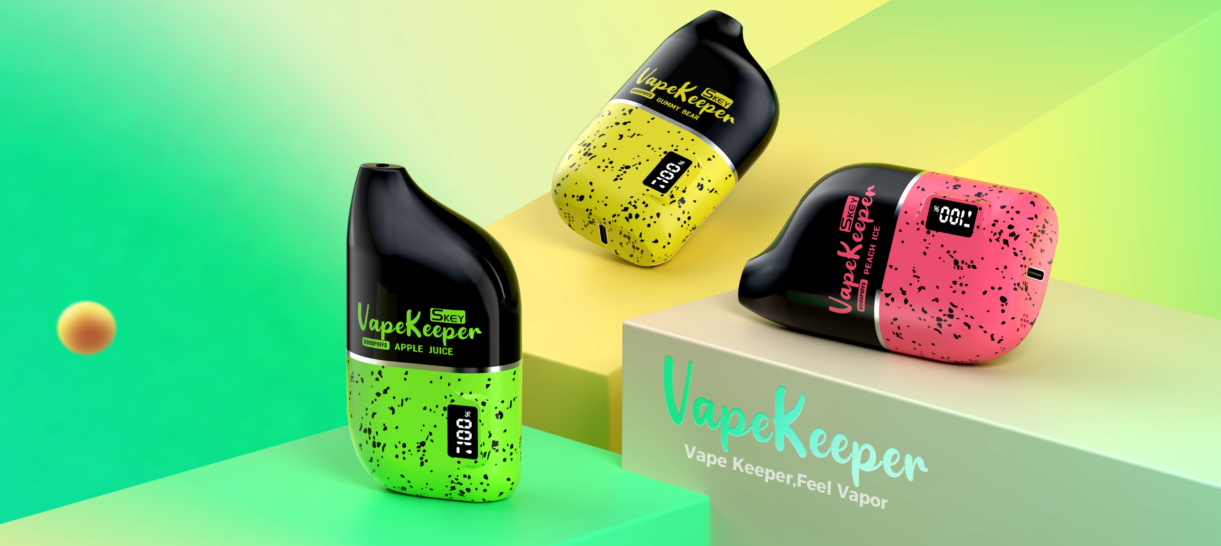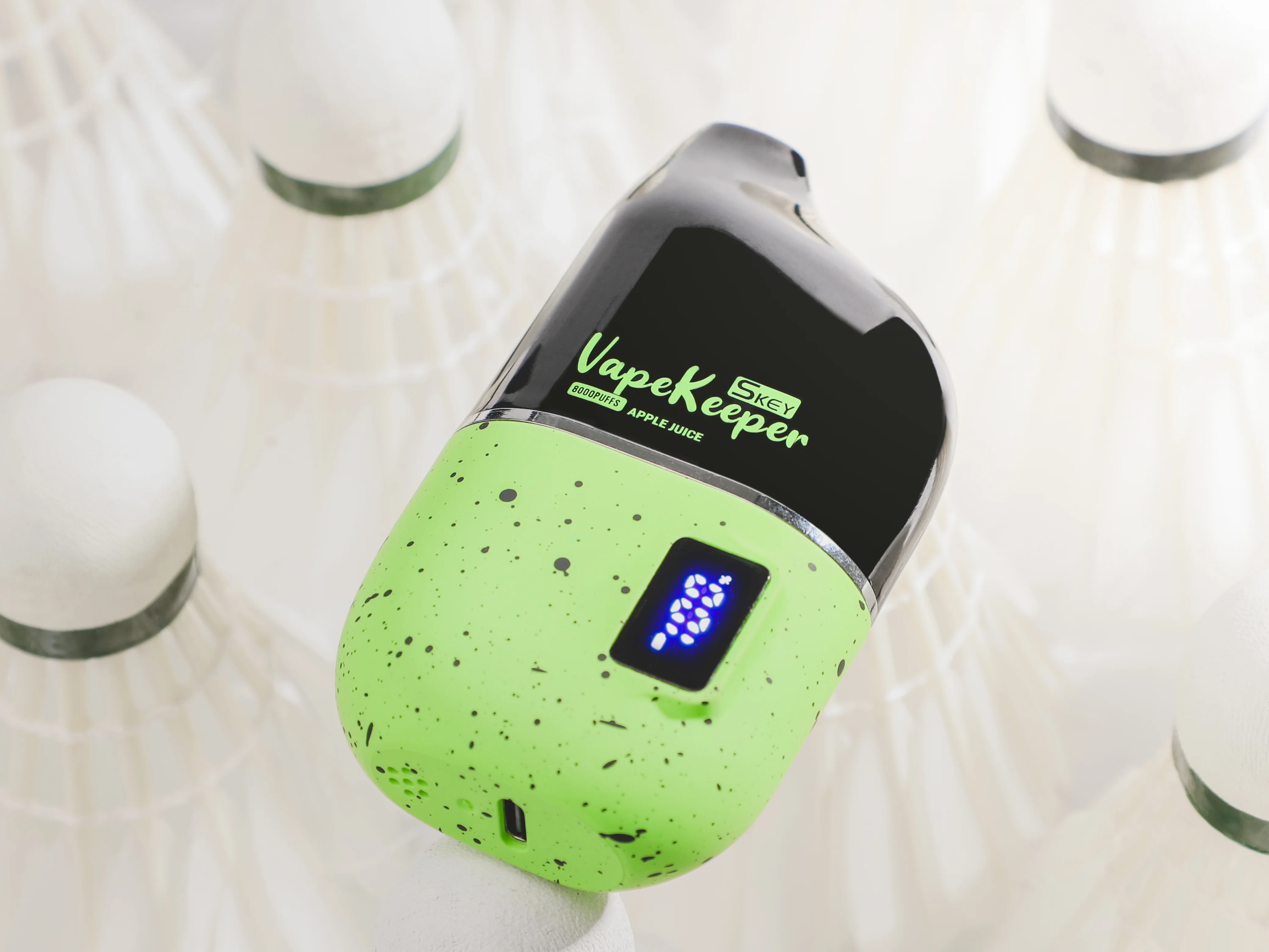Vapekeeper is packed with 18ml of pre-filled e-liquid, delivering a luxurious 8000 puffs of enjoyment. Its top feature is the display screen, letting you keep an eye on the power level and charge it when needed. Find the perfect harmony with the 1.0ohm mesh coil, combined flawlessly with a 550mAh built-in battery, ensuring a steady and seamless vaping experience. With Type-C fast charging, you can vape non-stop and immerse yourself in a satisfying experience.
